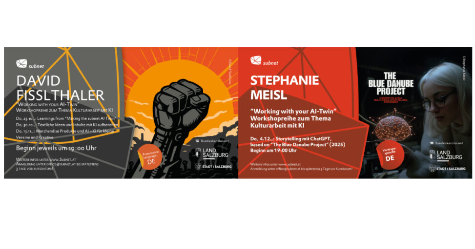 Seit Winter 2024 wird der subnet AI Twin entwickelt. Wie verändert sich kreatives Arbeiten, wenn künstliche Intelligenz als Werkzeug genutzt wird? David Fisslthaler und Stephanie Meisl geben Einblick in ihre Arbeitsprozesse mit KI-unterstützten Tools. Von der Recherche über die Strukturierung bis hin zur textlichen und visuellen Ausarbeitung eines Vortrags samt Buchbeitrag und zeigen die beiden, wie verschiedene KI Werkzeuge bei der Arbeit mit komplexen, mehrdimensionalen Inhalte unterstützen können.